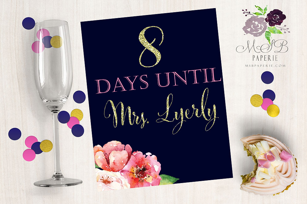 Navy/Pink/Gold 8x10 Sign - Countdown